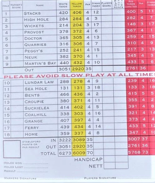 The scorecard at Elie is fairly remarkable, with sixteen par 4s and two par 3s. Usually I would be worried this threatened monotony but there should be no such worries here, the par 4s vary in length from 252 to 466 yards.