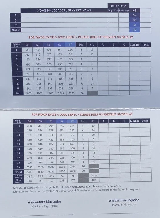 I was met on the first tee by a very friendly starter. From speaking to others who have played there, and from my own experience, one of the main parts of his job is to try to get your expectations set and steer you towards a set of tees. He asked me my handicap (12) and suggested I play the ‘55’ tees. This means the course plays 5,500 meters (or 6,000 yards) from them. I am a big fan of playing the right tees but this is probably a little shorter than I would normally consider - I would have normally gone off of the ‘59s’.